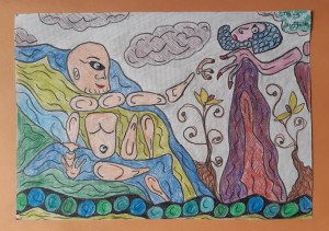 Spent a happy few hours colouring in this drawing, inspired by Sunday evening`s #LifeDrawingLive – the BBC art show presented by Joe Lycett. I never got the attraction of colouring books, in which the consumer takes pleasure out of colouring in drawings and patterns produced by someone else. But adding the colour to my own creations is mega-mega therapeutic. Cheers to Joe Lycett!